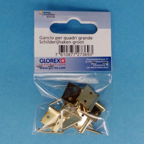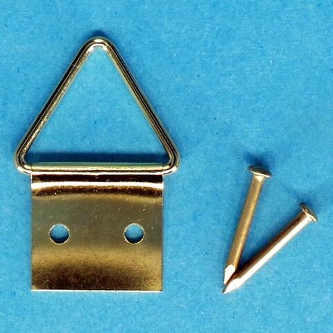 8 Stück Bild Aufhänger aus Metall, 14 mm breit. Inklusive 6 Stück kleine Nägel für die Befestigung am Objekt.