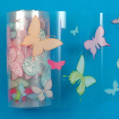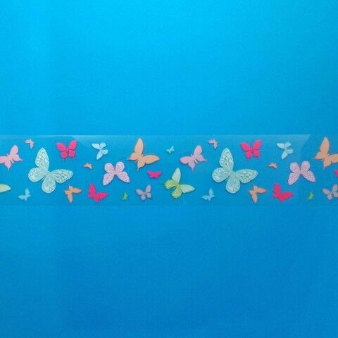 | Farbe: | Bunte Schmetterlinge auf transparenter Folie. |