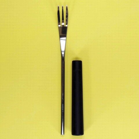 Standard Käsefondue Gabel mit schwarzem Griff.