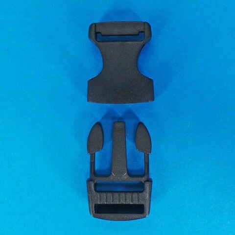 Mittlere Klick Schnellverschluss Steckschnalle aus schwarzem Kunststoff für Bänder bis 20 mm. Dieser Klickverschluss eignet sich zum Beispiel für Taschen- oder Rucksack Verschlüsse.